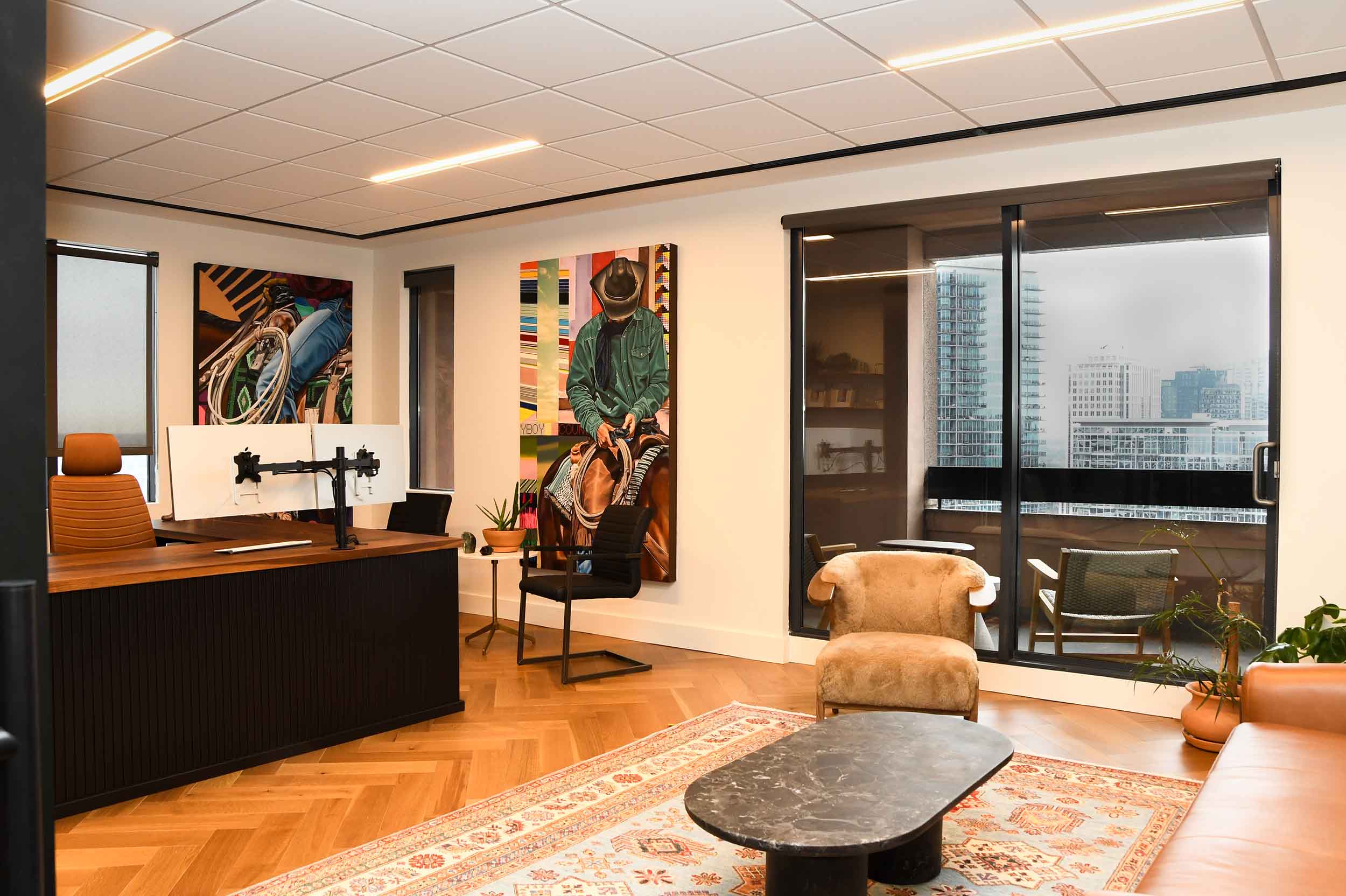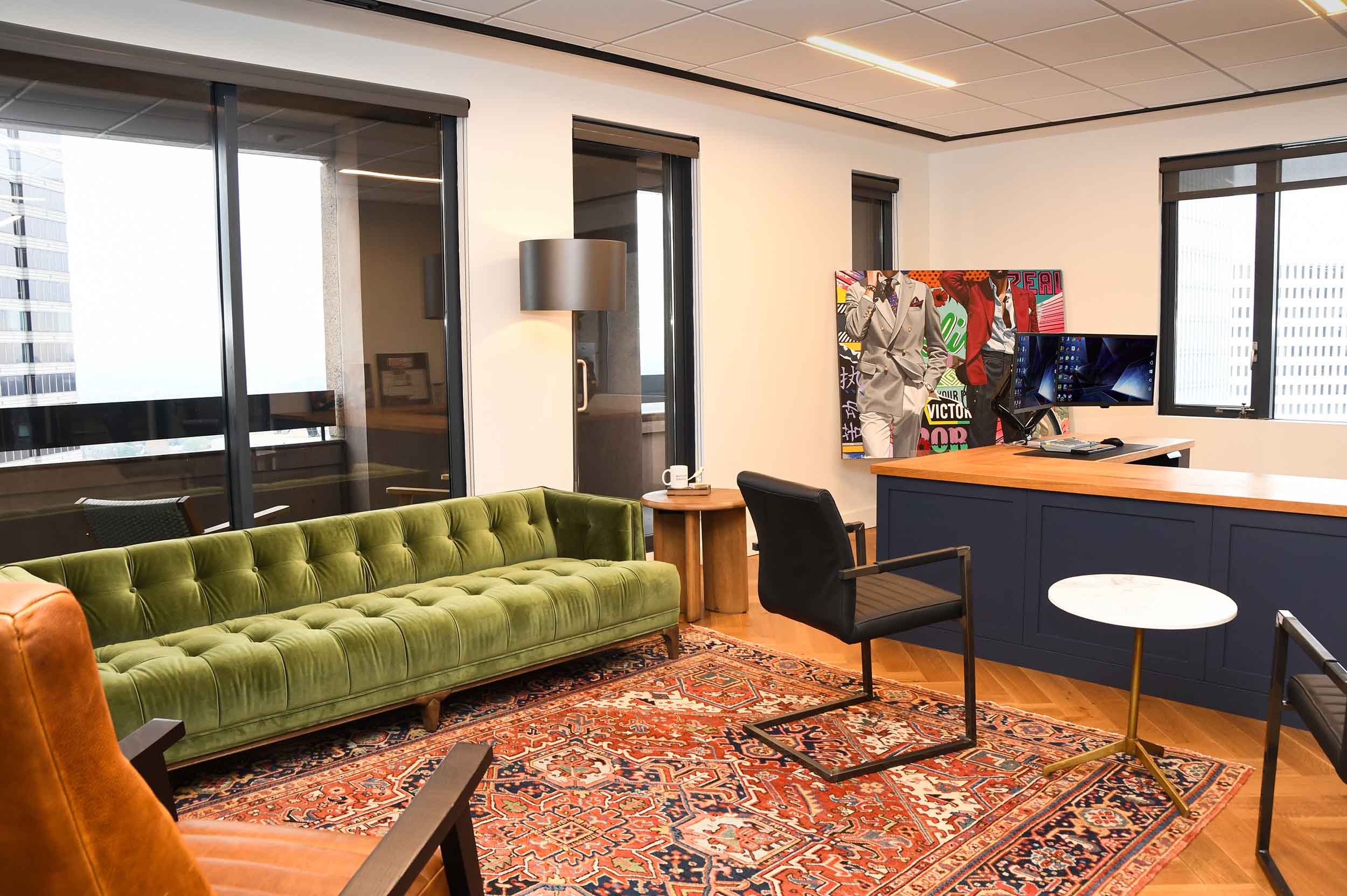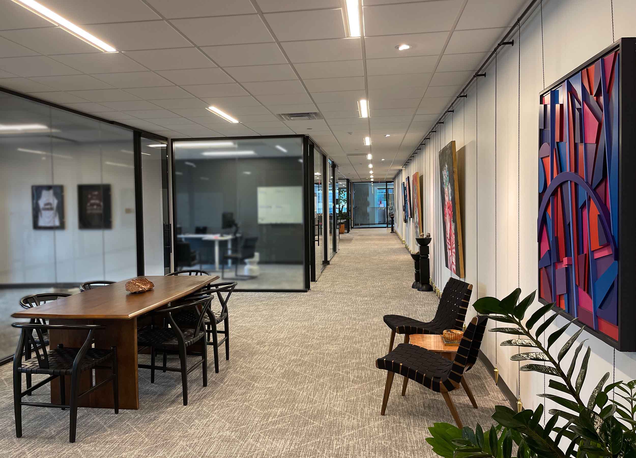The project goal was to create a warm, sophisticated workplace that reflects the personality and leadership style of the firm’s partners while supporting daily collaboration and focused work. The concept centers on transparency, natural light, and a balanced blend of openness and privacy. Rich wood tones, refined materials, and tailored detailing create a polished workplace that feels both contemporary and timeless. The completed project successfully delivers a workplace that reflects the client’s identity while providing a functional and visually refined environment demonstrating how thoughtful design can transform both the aesthetic and experience of a professional workplace.
