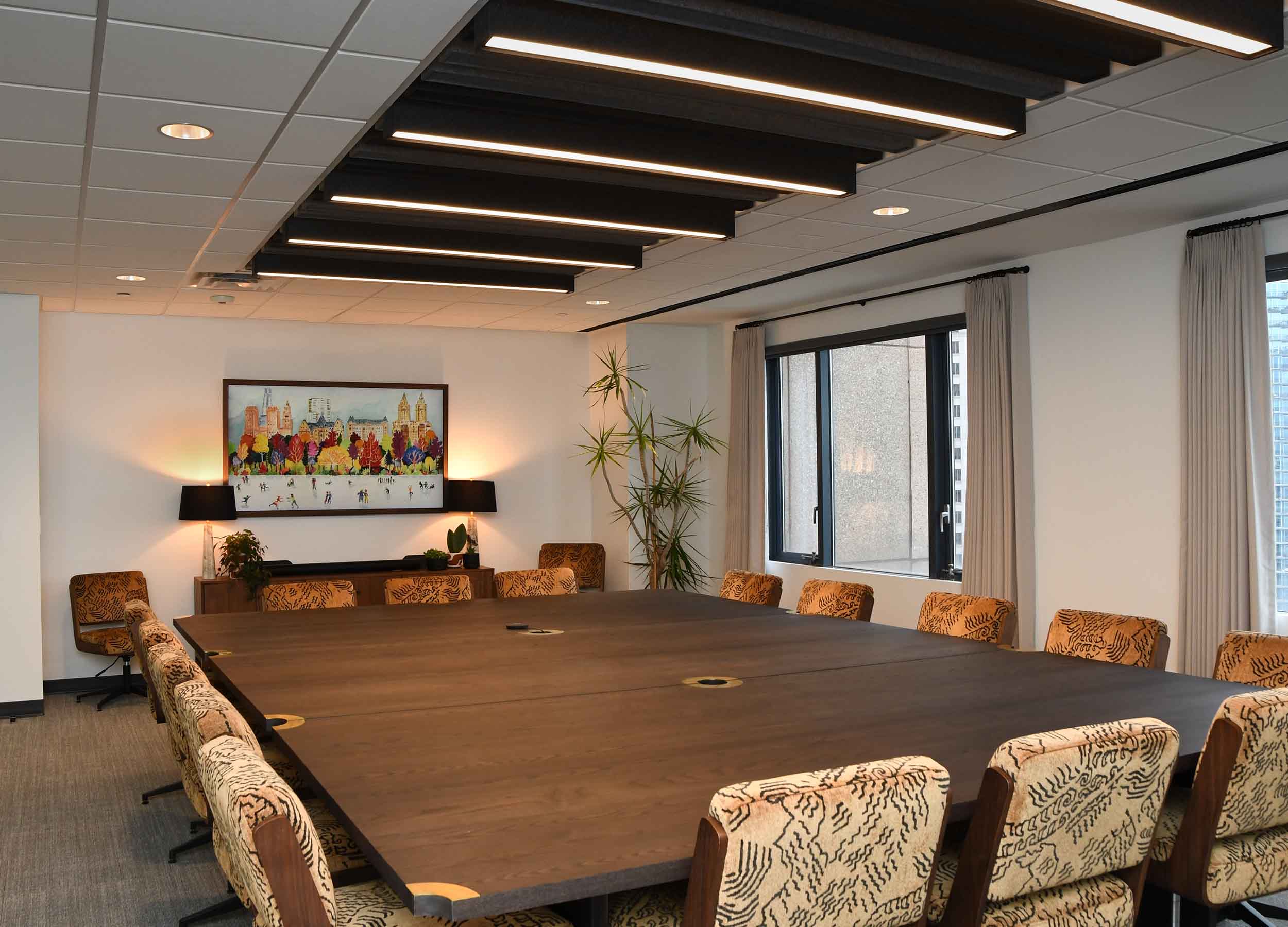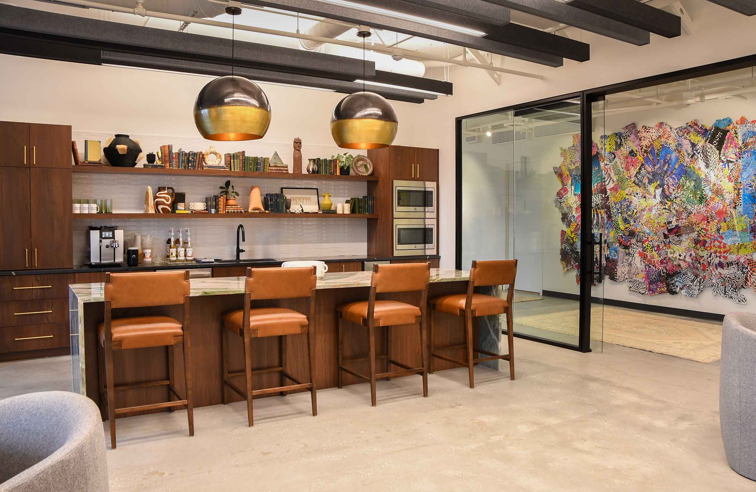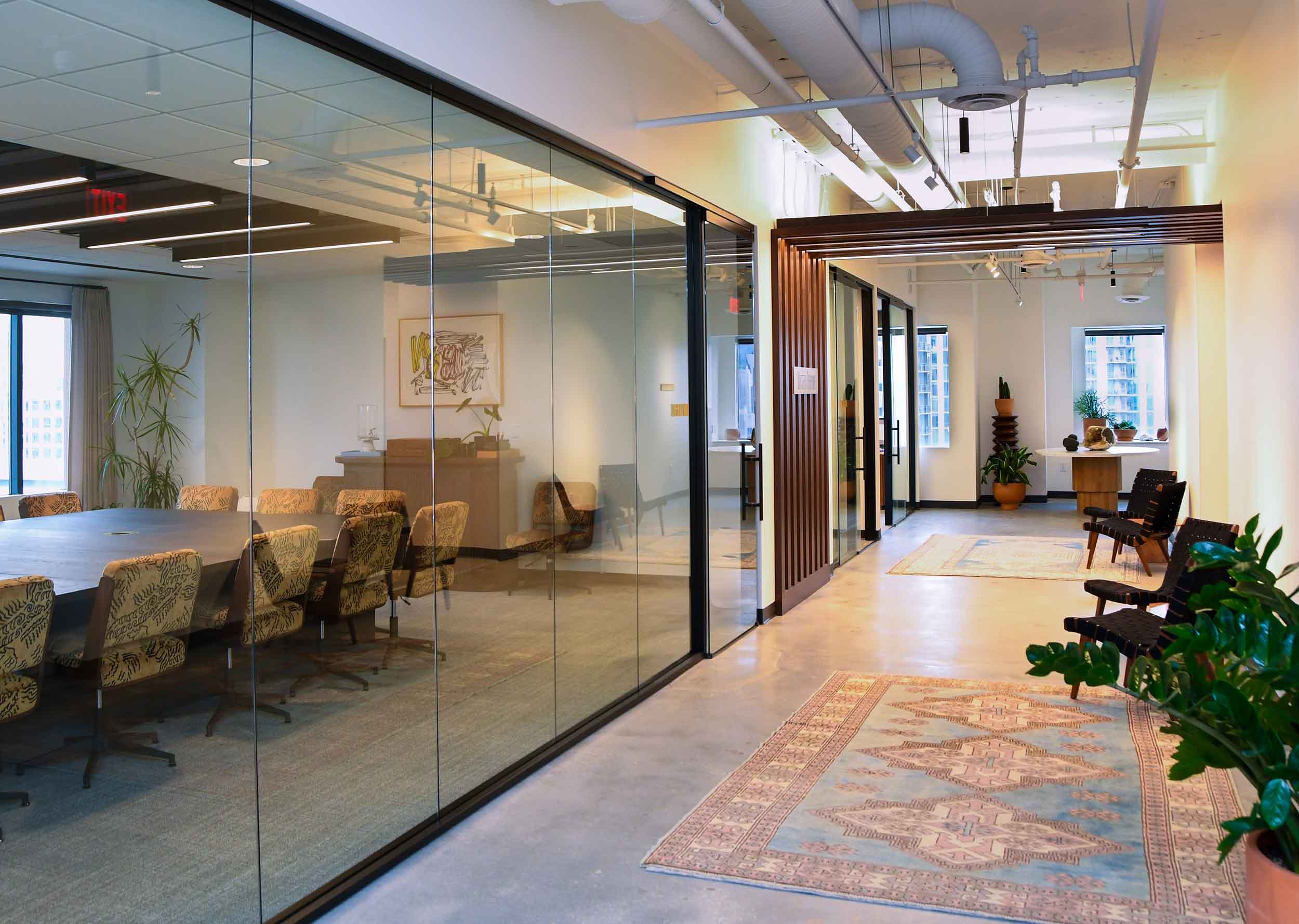 The project goal was to create a warm, sophisticated workplace that reflects the personality and leadership style of the firm’s partners while supporting daily collaboration and focused work. The concept centers on transparency, natural light, and a balanced blend of openness and privacy. Rich wood tones, refined materials, and tailored detailing create a polished workplace that feels both contemporary and timeless. The completed project successfully delivers a workplace that reflects the client’s identity while providing a functional and visually refined environment demonstrating how thoughtful design can transform both the aesthetic and experience of a professional workplace.
